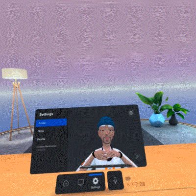 相较于《Immersed》、《Virtual Desktop》等同类型应用,《Horizon Workrooms》界面会显得比较简洁。在常驻功能栏中,可以看到该软件分为了今日会议提醒、虚拟办公空间以及个人办公空间三大板块,分别适用于虚拟会议以及个人办公场景。