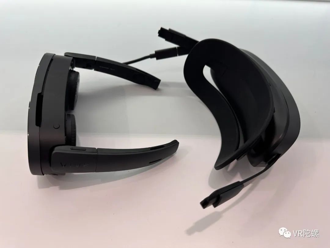 陀螺君在现场体验到了两种形态的 VIVE XR 精英套装,“一体机”模式下,头显前后配重合理,“分体机”模式下,整体头戴佩戴负重大幅减小。据介绍,其产品配件中还将配备一条顶部绑带,以固定头显,优化头戴体验。