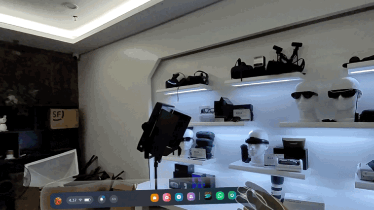 另外,实测两颗 RGB 摄像头运作时,四目灰度摄像头也在进行辅助定位,若遮挡灰度摄像头,彩色透视的现实画面会不停发生抖动。尽管 Quest 3 的混合现实仍有一些有待改进的地方,但是这也是目前笔者体验过消费级 VR 设备中彩色 VST 效果最好的。