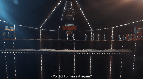 场景快速切换,玩家们来到了电视剧主角进行打弹珠游戏的同款小巷。这一关考验的是玩家们的快速寻物能力,正上方的屏幕会显示不同的单词(英语),要求玩家在限定的时间内数出场景周围的图案个数,并根据数量选择站在代表奇数和偶数的两块木板上。答错的玩家脚下的木板将塌陷坠入深渊。