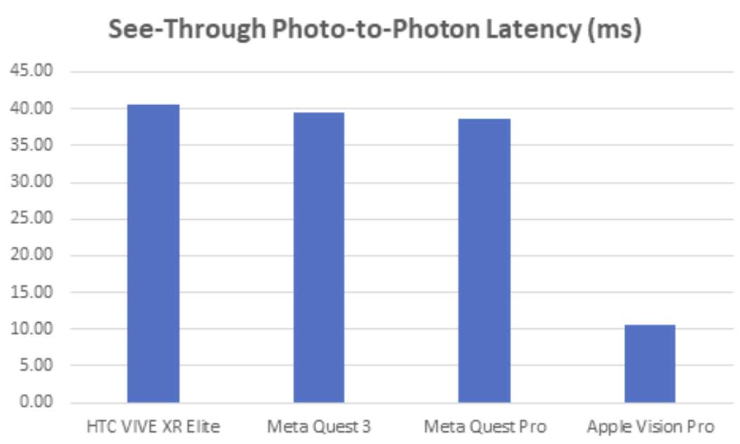 Optofidelity已经在发布了第一批结果:AVP的“光到光子”延迟不到12毫秒,并且显示延迟比Meta和
