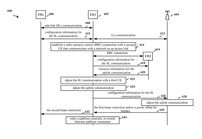 在一个实施例中,专利描述了一种用于在第一用户设备(UE)进行无线通信的方法。在所述方法中,第一UE通过SL与一个或多个UE进行通信。第一UE进一步发送或接收用于与一个或多个UE的SL通信或与网络实体的上行链路通信的配置信息。