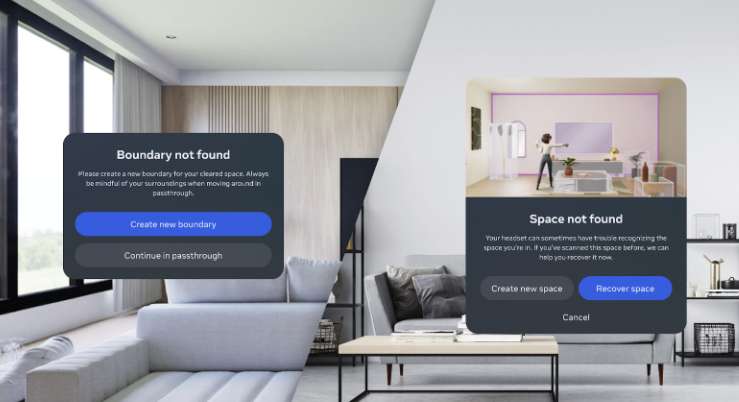 但有时候,设备可能无法回忆起你所在的房间。如果你有一段时间没有在特定空间使用Quest,或者你的房间环境发生了巨大变化,比如照明不同或家具移动,这种情况就会发生,并造成应用启动需要更长的时间,因为你需要重新设置边界、房间布局和应用内容。