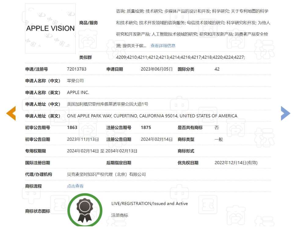 另一种可能是,苹果或会选择“Apple Vision”这个已经获批的商标。
