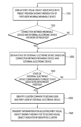 在一个实施例中,可穿戴设备的处理器显示与通过第一用户视场观看的位置相关联的第一视觉对象。处理器基于识别连接到可穿戴设备的外部电子设备来获得外部电子设备的状态。处理器基于与用于显示与该位置相关联的视觉对象的预设状态相对应的外部电子设备的状态,识别外部电子设备中的第一用户和第二用户共有的聚类。处理器基于所识别的聚类,将通过FoV观看的第一视觉对象调整为由聚类指示的第二视觉对象。