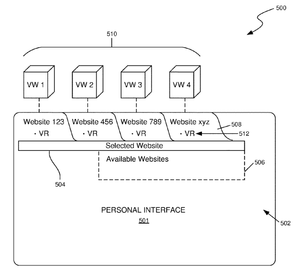 在一个实施例中,专利描述的系统针对用于可互换地提供对多个虚拟世界的访问的虚拟Web浏览器。对应的网站和虚拟世界对的浏览器选项卡可以与相关联的控件一起显示,对这样的控件的选择影响虚拟世界的3D内容的实例化。作为与虚拟世界中的对象的交互的结果,可以自动生成一个或多个选项卡,从而便于前往与交互所指向的对象相对应的世界。