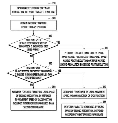 23. 《Samsung Patent | Wearable device for changing frame rate associated with foveated rendering according to movement speed of gaze position and method thereof(三星专利:根据注视位置的移动速度改变与注视点渲染相关的帧率的可穿戴设备及其方法)》
