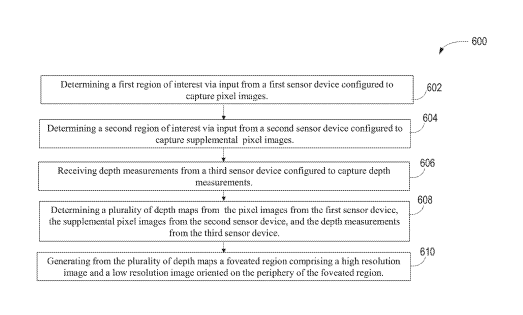 在一个实施例中,经由来自配置为捕获补充像素图像的第一传感器设备的输入来确定第一感兴趣区域。经由来自配置为捕获补充像素图像的第二传感器设备的输入来确定第二感兴趣区域。从配置为捕获深度测量值的第三传感器设备接收深度测量值。根据来自第一传感器设备的像素图像、来自第二传感器设备的补充像素图像和来自第三传感器设备的深度测量值来确定多个深度图。从多个深度图生成注视点区域。