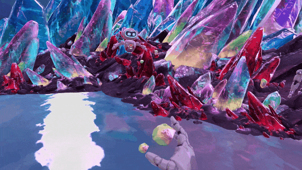 在这一体验场景中,对面的以太碎块可以化作人类的记忆,是让玩家深陷其中的一个陷阱。玩家需要需要击碎以太碎块,从而突破局面。就像《星际穿越》中墨菲身处的高维空间,需要先打破才能突破。