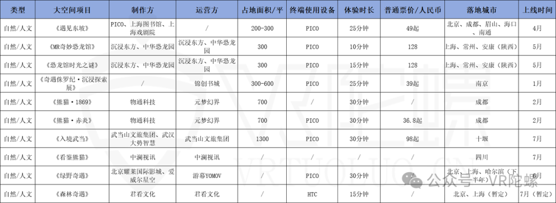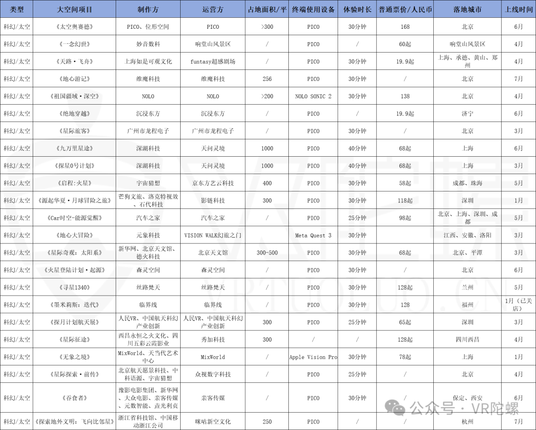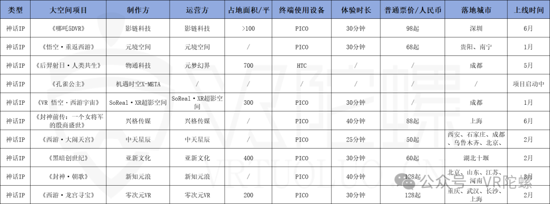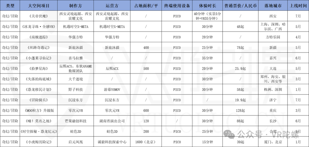 最后还值得一提的是,在今年VR大空间内容制作商中,看到了不少新的身影,如喜马拉雅、汽车之家、阅文集团等,同时从游戏行业、传统影视内容制作方涌入的企业越来越多,甚至有业内人士向VR陀螺反馈,还有之前不少为传统电影/动漫做特效的企业也都加入这条赛道,试图分得一杯羹。
