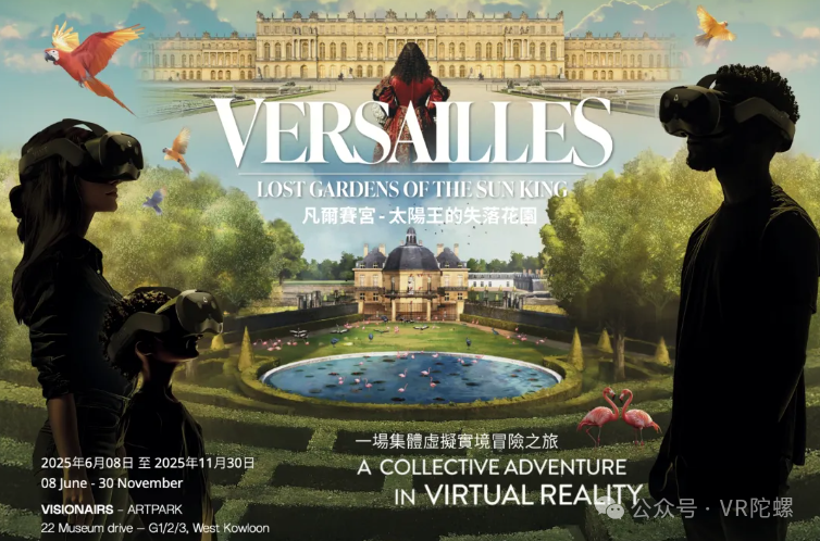 《凡尔赛:太阳王的失落花园》由凡尔赛宫、HTC Vive Arts、Small Creative等机构合作推出的沉浸式体验项目,通过VR技术重现了路易十四时期已消失的皇家动物园、迷宫林苑和忒提斯石窟三大景观。体验上观众将会穿越时空,仿佛置身于17世纪的凡尔赛宫。在这里,不仅能亲眼目睹那些早已消失在历史长河中的遗迹,还能聆听传奇园艺师安德烈·勒诺特尔的虚拟导览解说,深入了解这些景观背后鲜为人知的故事。