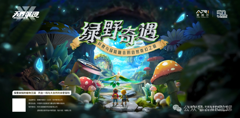 《绿野奇遇》是一部以自然科普为主题的沉浸式体验项目,该项目从“微缩探险家”的独特视角出发,重新构建人们对自然的认知,体验时长25-30分钟。体验者将成为拇指大小的探险家,全程有守护精灵“露露”相伴,一同坠入一个神秘而又危机四伏的植物王国。在这个王国中,巨型花朵、悬空藤蔓桥等自然景观被重新解构,人类视角下的微小元素(如水塘)成为探索自然循环的关键场景。