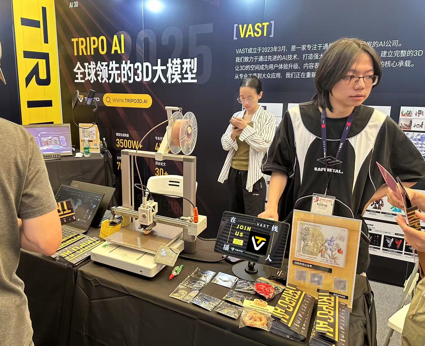 Tripo在游戏、潮玩等领域已经有广泛的应用,截至目前,该平台已服务全球300万+创作者,4万+中小开发者,700+大型企业级合作伙伴,累计生成建模4000万+个。ChinaJoy现场干脆摆了一台3D打印机,可以直接将建模打印出来。