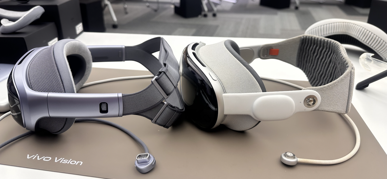 佩戴方面,vivo Vision 提供了单环与双环两种绑带方案。双环绑带在设计上与 AVP 有所区别,更注重对后脑的包裹式支撑,以有效分散压力。根据 VR陀螺现场实际体验,vivo Vision 的佩戴舒适度显著优于 Apple Vision Pro。