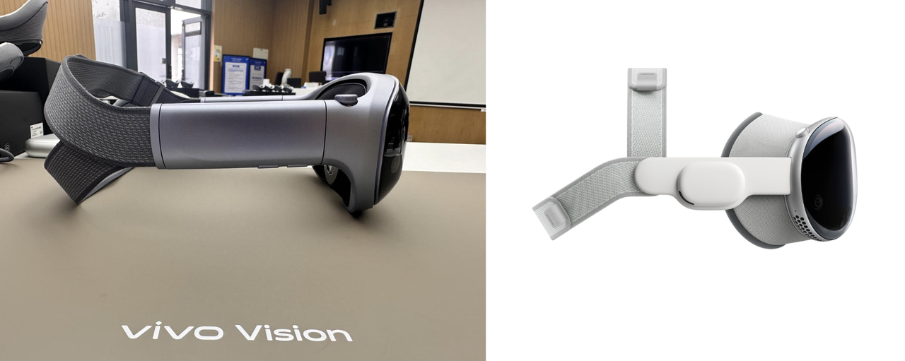 vivo Vision 的双环绑带相对于 AVP 也有一定差异化,AVP 的双环绑带为双环垂直设计,将一部分重力直接分配到头部中央;而 vivo Vision 的双环绑带则注重于后脑部分的包裹,以分散受力面积。VR陀螺实测,vivo Vision 佩戴体验远高于 AVP,近 200g 的减重加上更符合自家产品的人体工学设计,让整个头显舒适度加分不少。