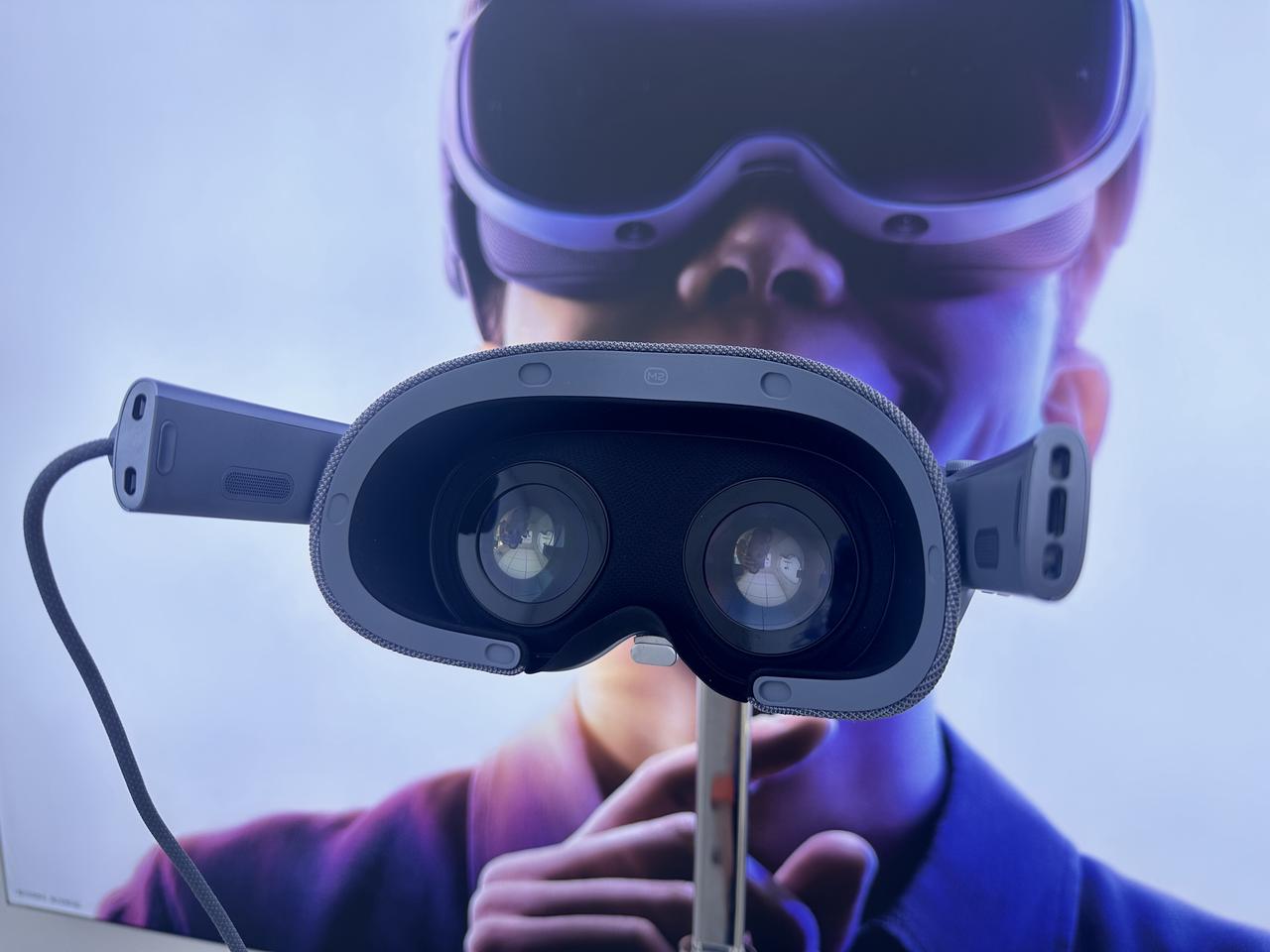 为驱动单眼接近 4K 的显示分辨率,该头显搭载了 4nm 制程的高通骁龙 XR2+ Gen2 平台,其 GPU 和 CPU 性能相较XR2 Gen 2 分别提升了 15% 和 20%,并支持低至 12ms 的全彩透视(VST)延迟。