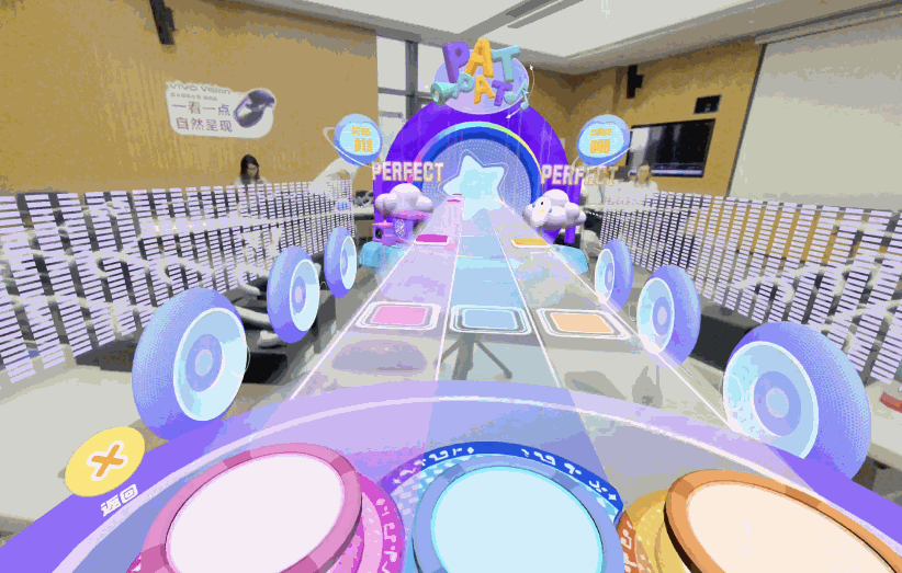 vivo Vision 在系统内提供了部分 MR 小游戏,如《小V的旅行》《桌鼓达人》,基于手眼协同交互,以及混合现实的特性,带来了相对不错的空间娱乐。据 VR陀螺获悉,《小V的旅行》由国内 XR 内容开发商Ming Studio制作。