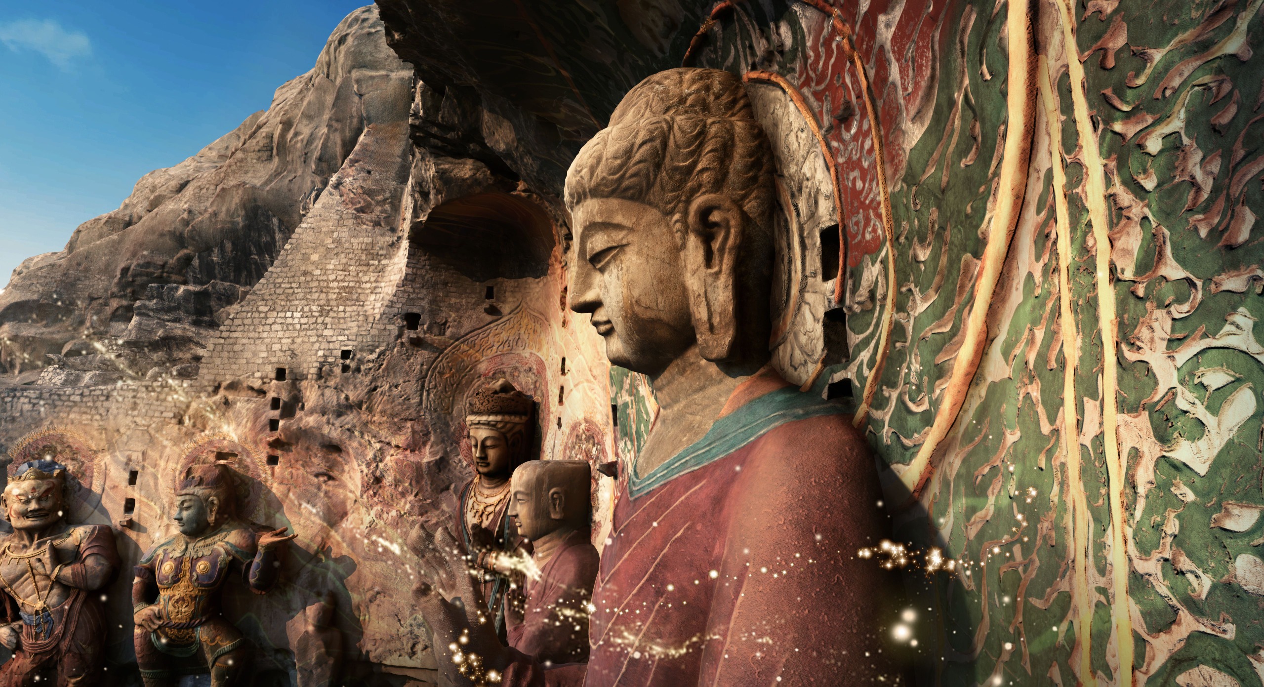 此外,元象还通过多项创新技术突破内容制作瓶颈,如运用AI三维重塑技术显著提升渲染效率与画面精度,成功复刻龙门石窟等宏大复杂场景;采用全景烘焙技术,确保不同尺度场景在 VR 设备上运行时不丢失精度,使渲染帧率提升30%~50%,流畅呈现高质量画面。