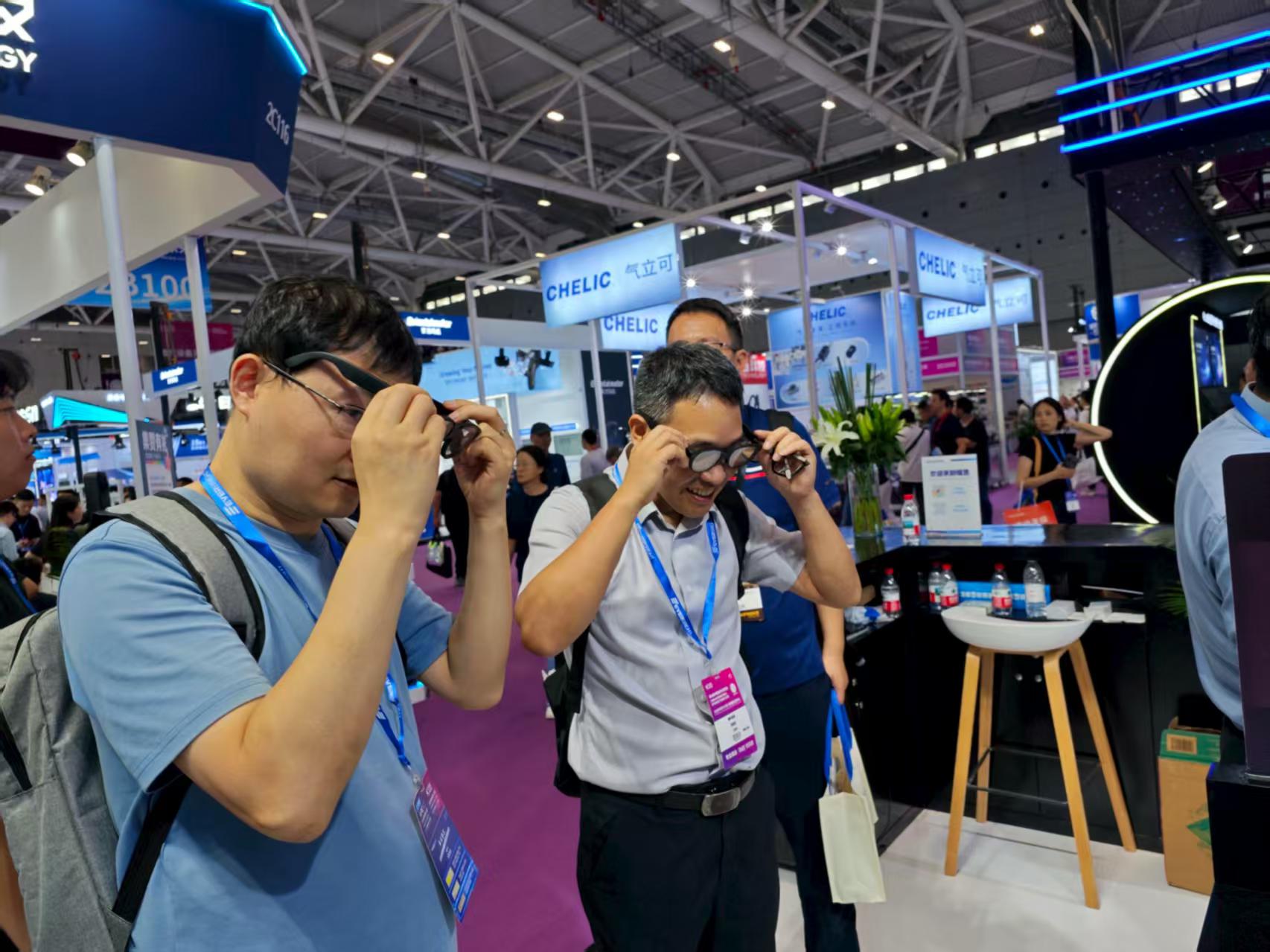 2025年9月10日,深圳光博会盛大启幕,智能眼镜显示技术成为焦点。镭昱携PowerMatch® 1系列Micro-LED微显示屏、光引擎及全彩AR眼镜重磅亮相,吸引了大量专业观众和行业伙伴。其基于量子点光刻技术(QDPR)实现的全彩Micro-LED显示方案,以卓越的综合性能表现赋能AI+AR眼镜开启视觉交互新时代。
