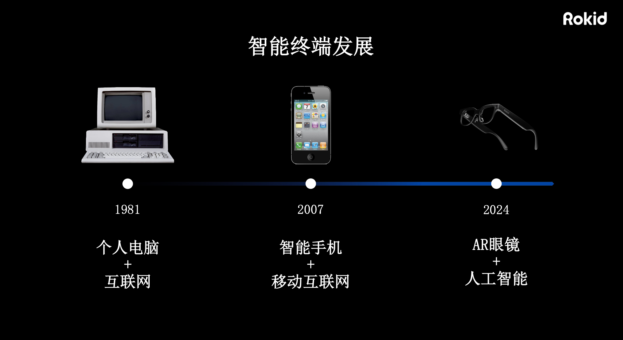 每个信息时代都会对应一个智能终端。互联网时代是从鼠标、键盘、显示器的PC开始的;移动互联网时代是从触摸屏的智能手机开始的。进入AI时代,传统的智能终端已经不能满足随时与AI互动的需求。我们认为AR眼镜是AI的最佳载体。
