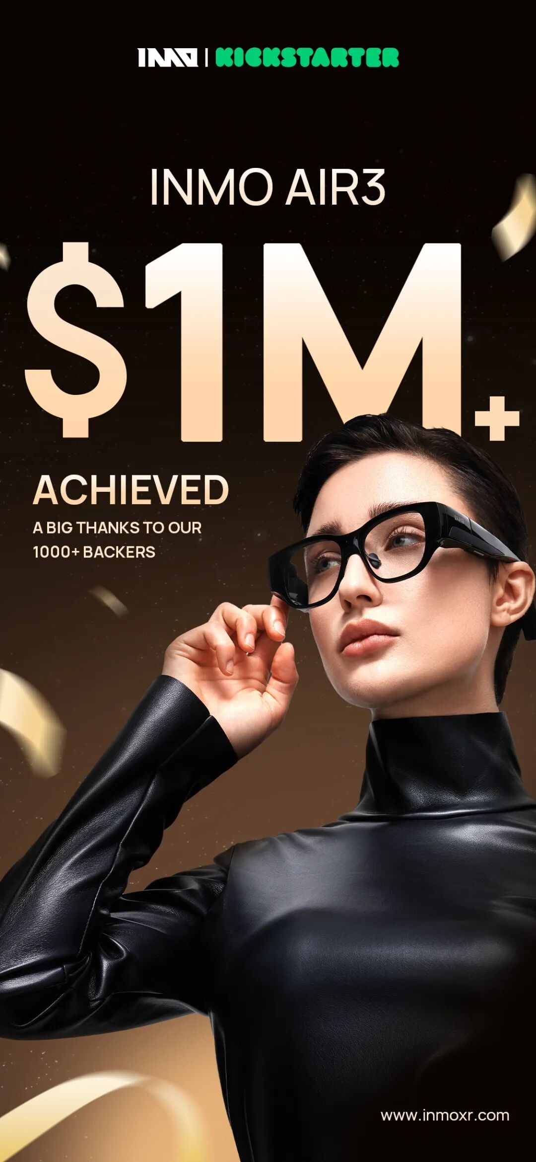 自发布以来,INMO AIR3的销量持续位居电商平台“一体式AI+AR眼镜”前列。去年10月,产品上线海外众筹平台Kickstarter,获得大量用户支持,很快众筹破100万美元。